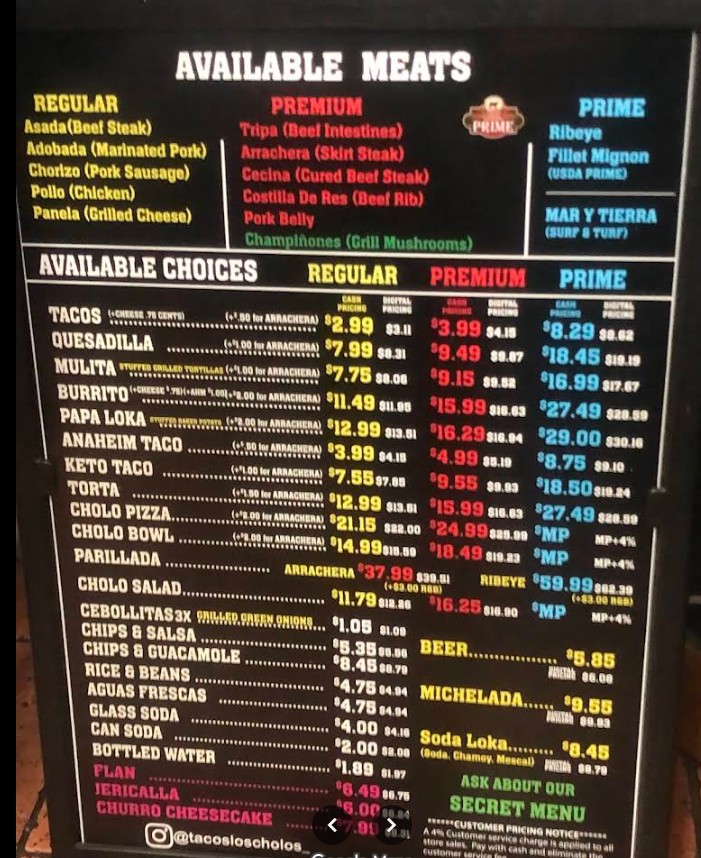 Lets cut to the chase — the food at Tacos Los Cholos is crazy good. We ordered asada, pollo and adobada tacos and stacked them up with onion, cilantro and salsas from the salsa bar. All the tacos were awesome, but the real standout was the rice and beans. It's such a simple dish, but done right. The aguas de sandia and piña were refreshing and on point too. Prices can get expensive if you only order the "premium" or "prime" items. Cash is king and will also save you some money. The place looks kind of ragged, but I think that's the look they're going for. There was an armed guard standing by the door. I don't know if this place gets rowdy at night, but everyone was chill around noon Parking can be a pain. It was semi clean (due LOTS of people) and the staff were friendly.